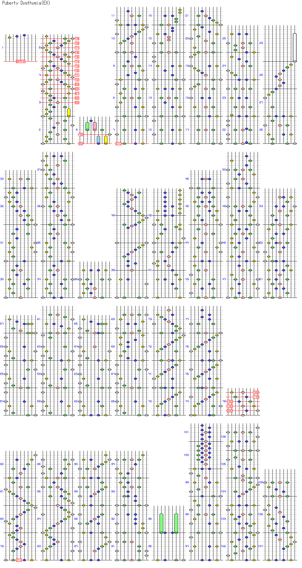 (譜面) | 110-196 | ●同時押し、連打、複合、発狂、前半難
