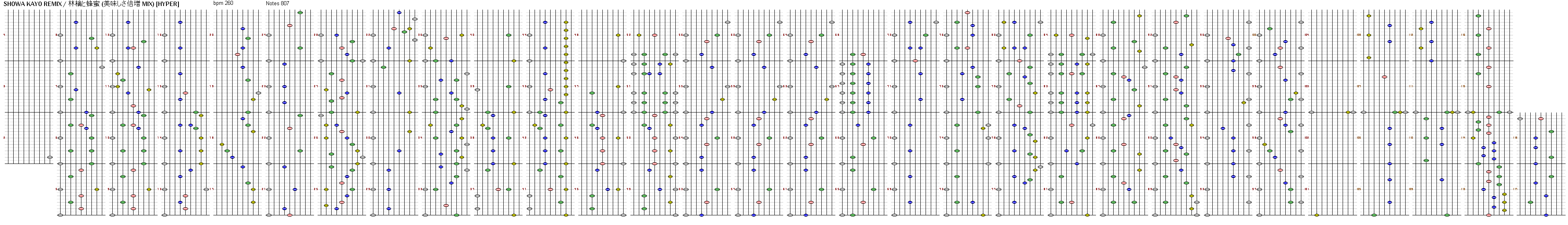 - 93~100節は左白と右白が4分交互になっており、左右振りがかなり激しい。左右振りをサボると押せない箇所なのでしっかり振ること。