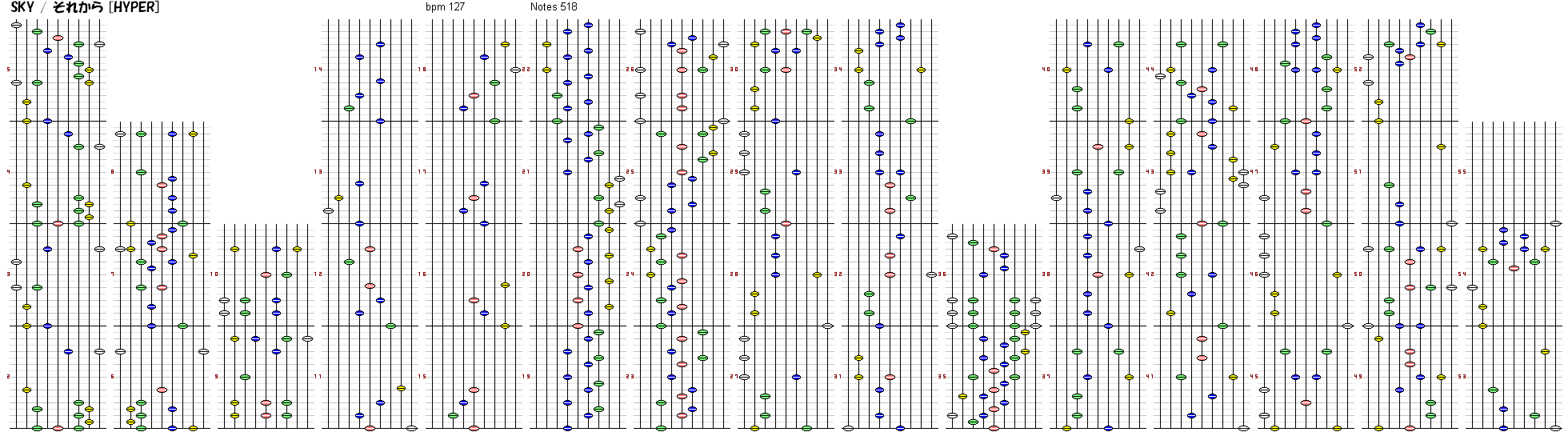 - 中盤に最大の難所。左から右への4個階段の3連発+α、その後1379同時押し3連発。