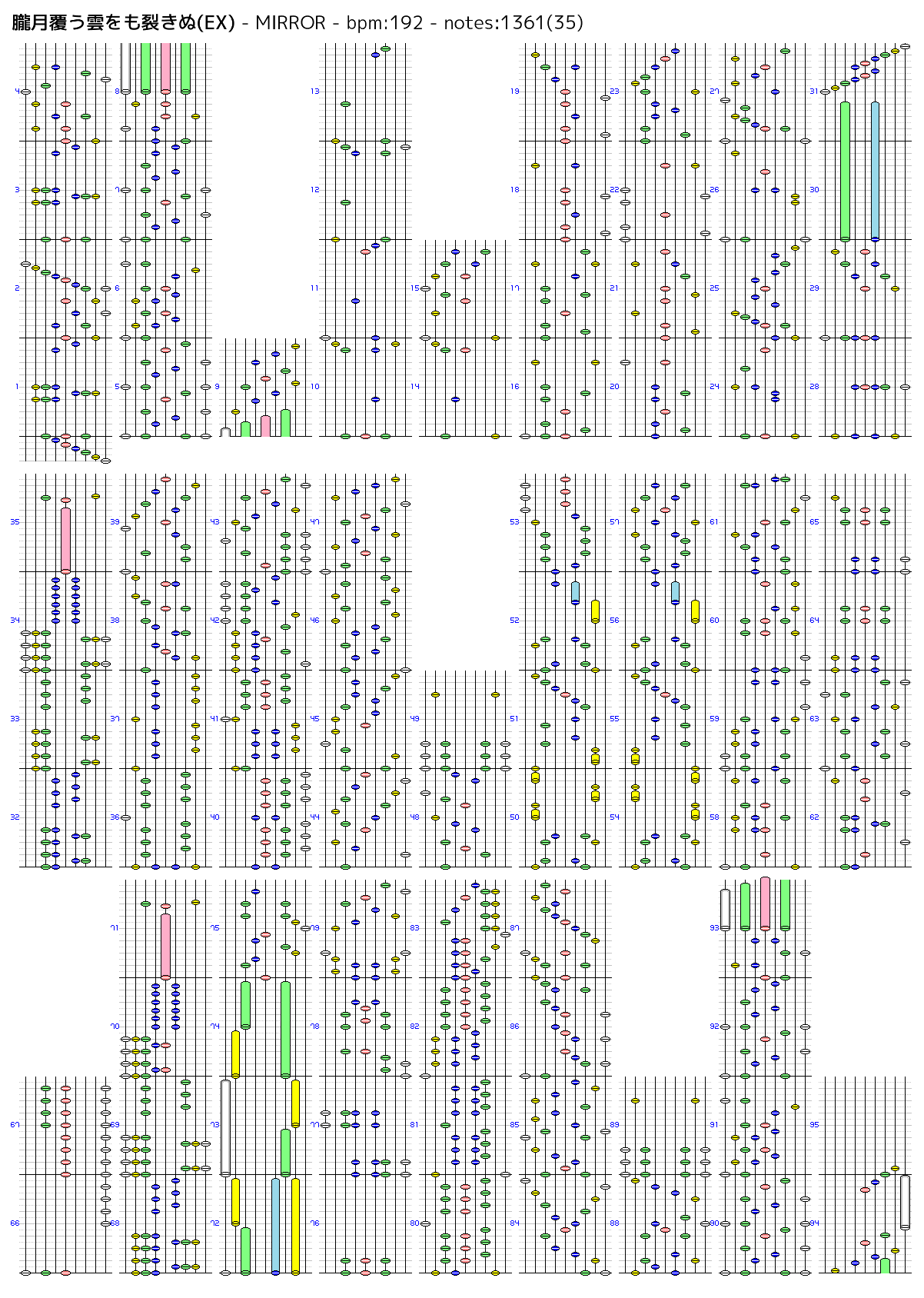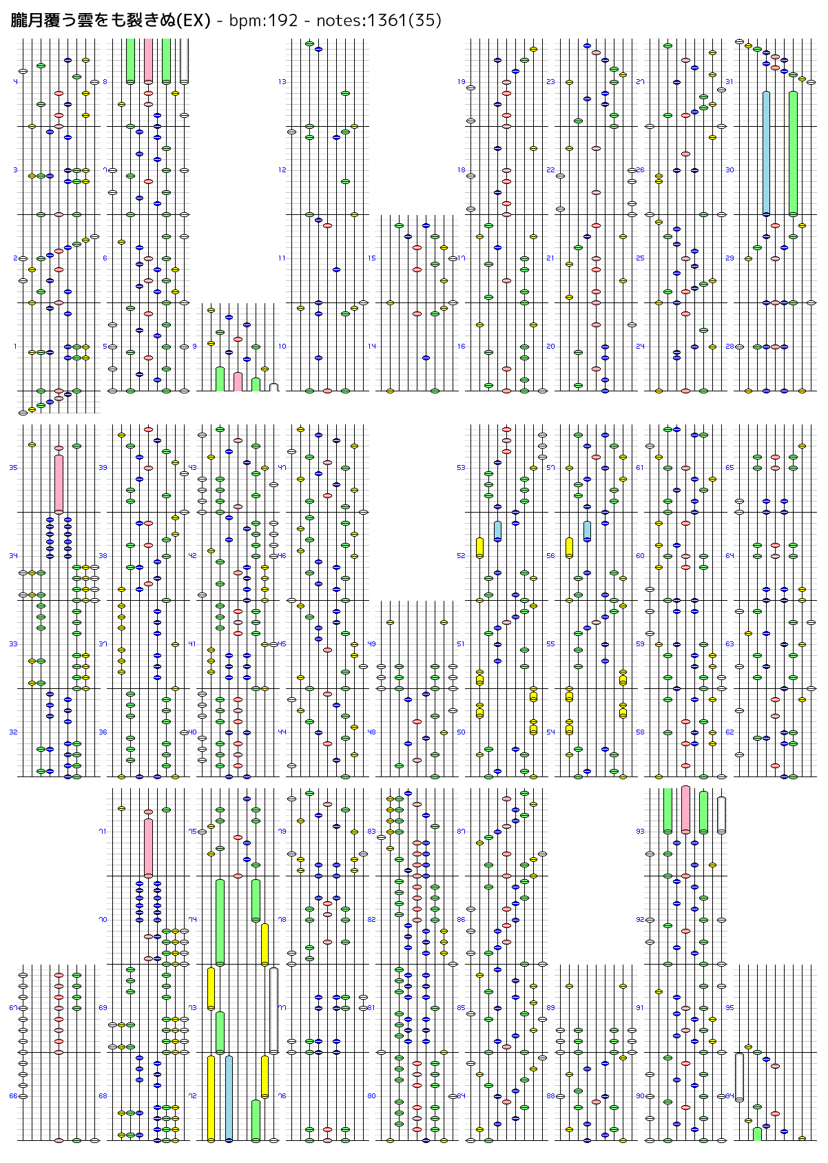 - 速度が速度なので、数は少ないが縦連打や階段もBADの出所になりやすい。両青縦連打は左手が追いつかなければ右手で押すのも手。縦連打の場所は覚えておこう。