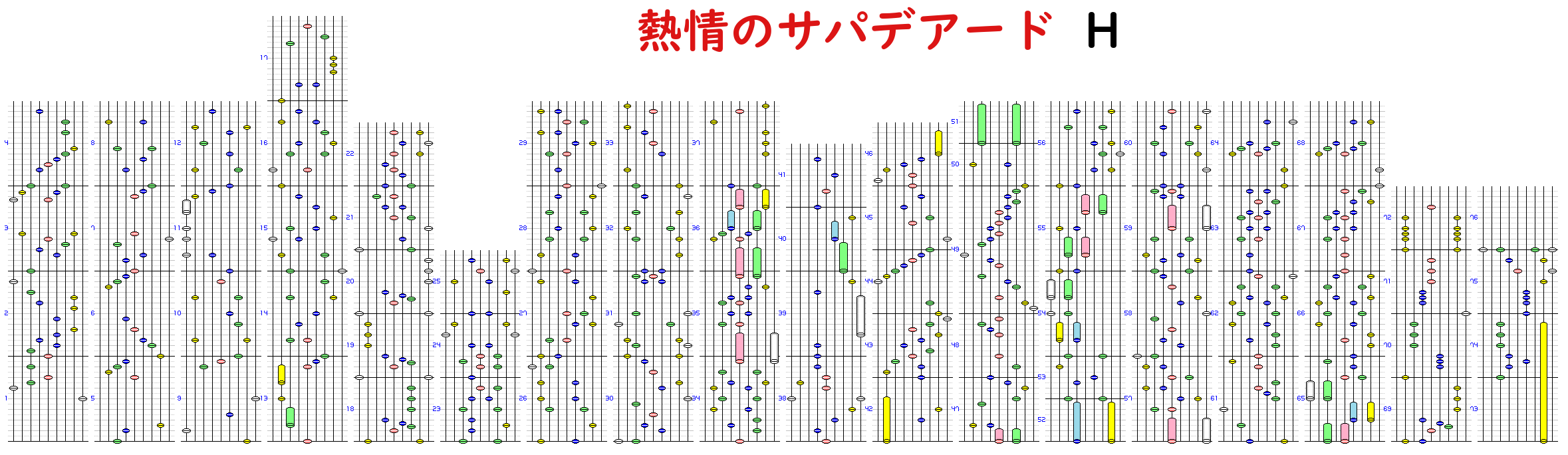 | [カテゴリ]ジャンル(タイプ) | 曲名 | アーティスト | 担当キャラ | bpm | Time | Notes | Long |