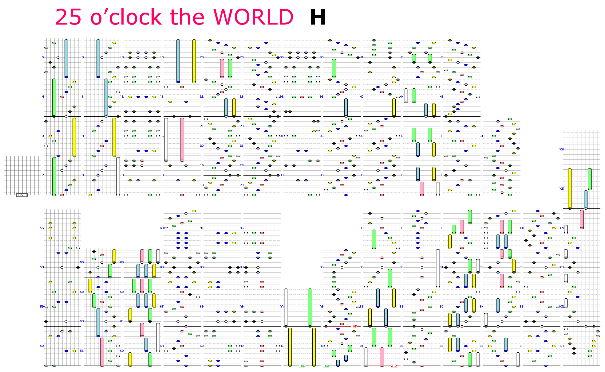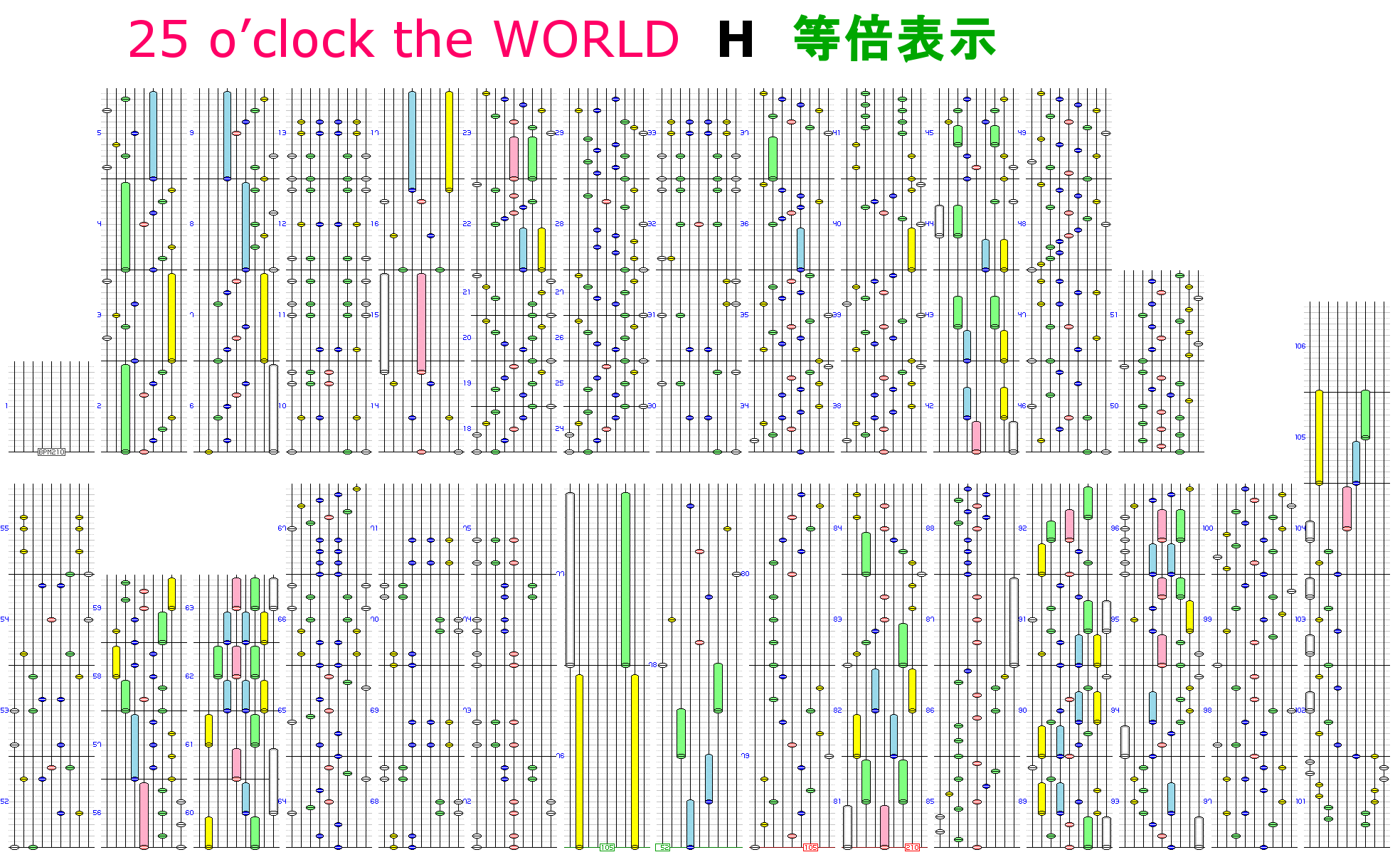 | [pe]25 o’clock the WORLD(H) | 25 o’clock the WORLD1 | BEMANI Sound Team "Power Of Nature" | ノルニル[新] | 52~210 | 2:01 | 1084 | 113 |