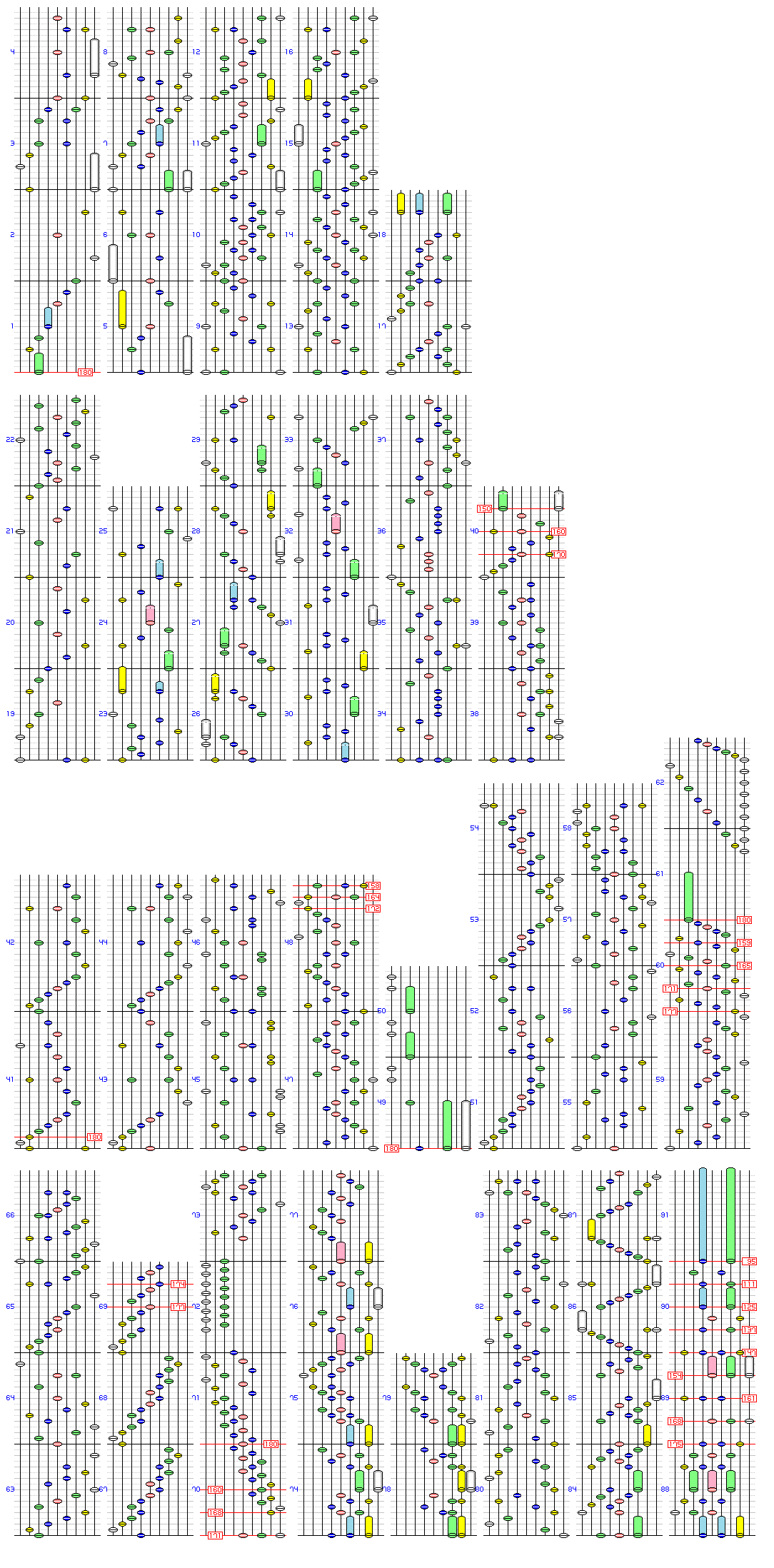 - 上記の通り階段が休みなく襲ってくる譜面だが、これに加え忙しさを助長しているのが「階段の短さ」とでも言うべき要素。5~3個の短い階段を組み合わせた螺旋や折り返しに似た階段が多く、細かいBADを誘う。